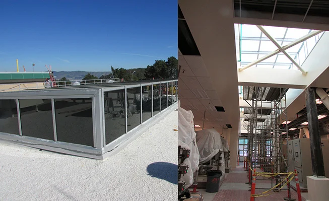 The upper offices of USCF Mission Bay offices were getting harsh glare from the skylights above. Windows Solutions recommended and installed 3M Night Vision 15 to fix the problem.
